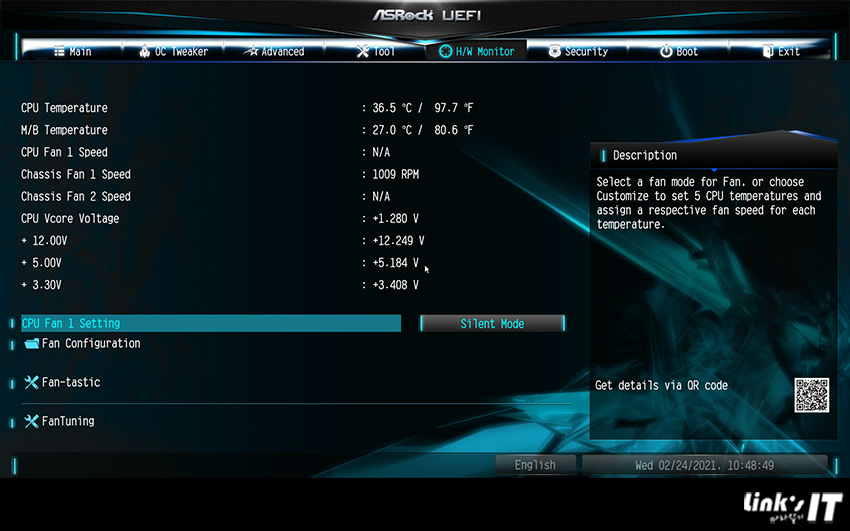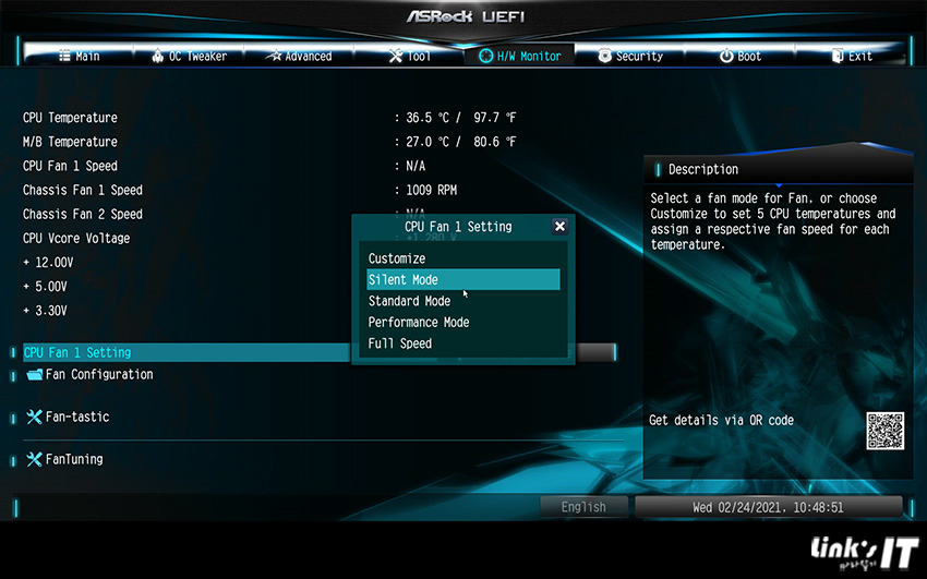 H/W Monitor를 통해 CPU / 개별 쿨러들의 rpm , CPU / 칩셋의 온도를 확인 할 수 있고, Fan-tastic 기능을 통해 자동 최적화를 실행하여 적절한 rpm 으로 온도를 관리할 수 있어 좀 더 소음에서 쾌적한 셋팅을 제공합니다.