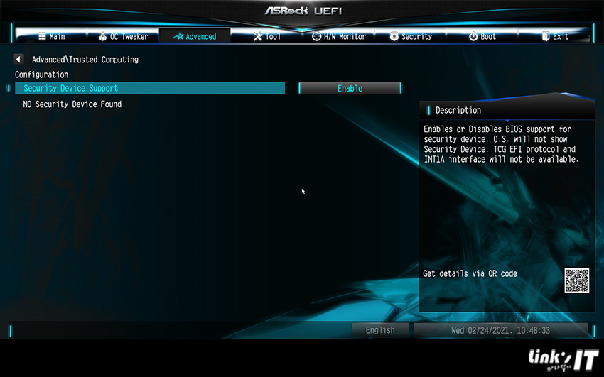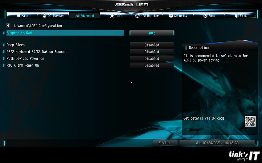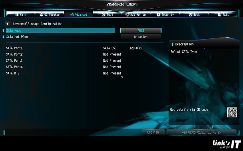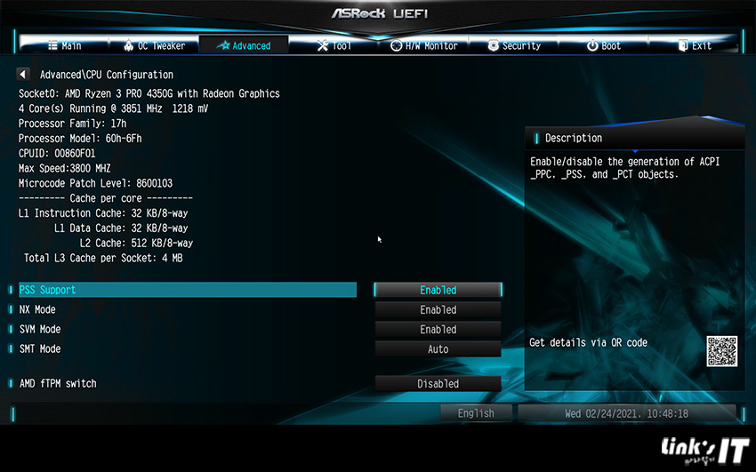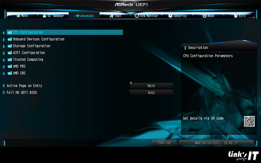 시스템의 전반적인 옵션을 확인 및 변경할 수 있는 Advanced 메뉴로 CPU 와 A520 칩셋의 상세한 기능 설정을 제공합니다. 대부분의 기능들은 기본 설정 그대로 사용하시는 것을 추천드립니다.