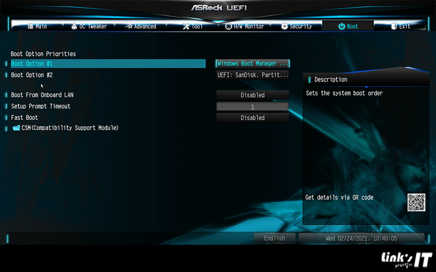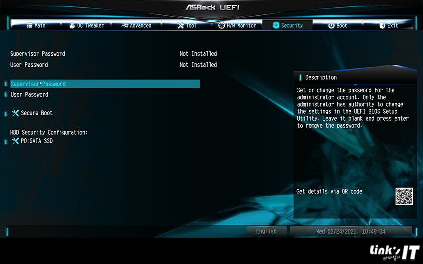 그 외에도 보안, 부팅 순서 등을 설정할 수 있는 기능을 제공하며 잘못 설정한 경우를 위한 Defaults 설정을 로드할 수 있습니다.