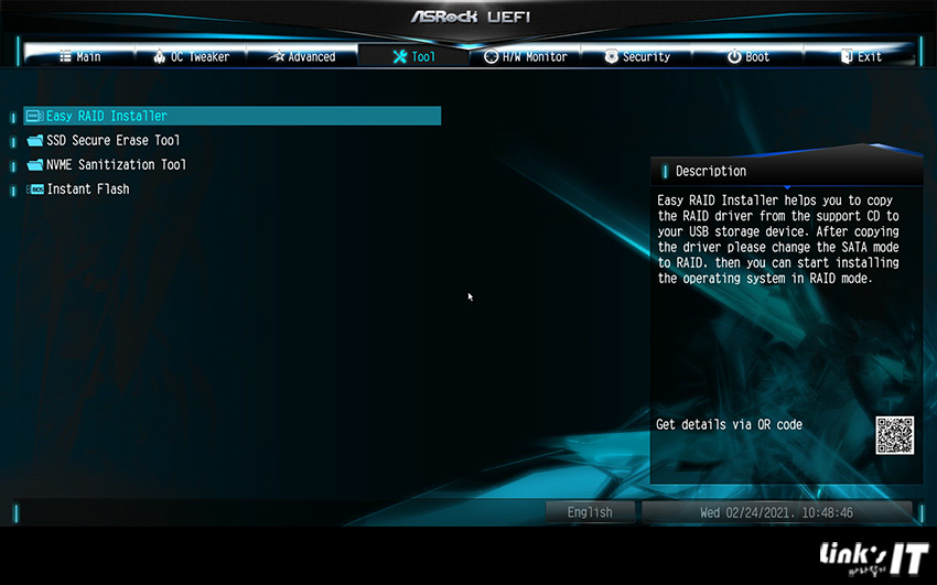 ASROCK 에서는 Tool 기능을 통해 바이오스 업데이트가 가능한 점이 강점이라 생각됩니다. 이번에도 역시 해당 기능이 제공되며 추가적으로 NVME 클린 기능까지 추가된 것을 확인할 수 있습니다.